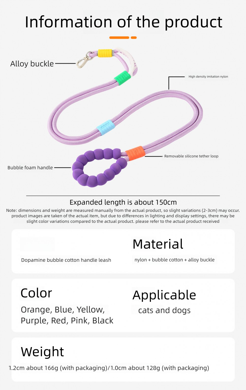 Dog Leash Traction Rope Pet P Rope Non-Painful Dopamine Color-Block Bubble Cotton Rope
